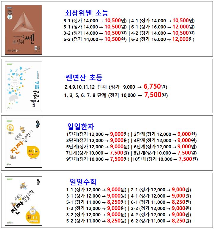 ■ 신사고 - 우공비, 쎈수학, 쎈B, 개념쎈, 라이트쎈, 최상위쎈, 쎈연산, 일일한자, 일일수학, 일일사회, 일일과학, 일일독해, 일일어휘, 일일문해력